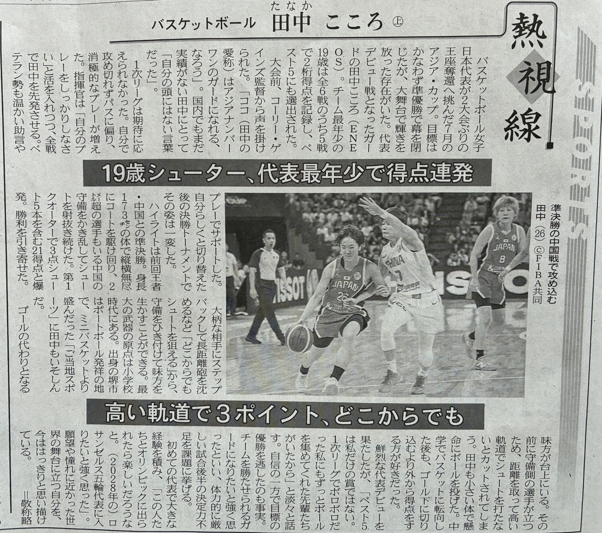 新聞記事より備忘録 女子バスケ界に、期待の新星が現れました。 その名は 田中こころ選手。ENEOSサンフラワーズ所属、桜花学園高出身。高校時代にはインターハイ&ウインターカップの2冠を達成し、卒業後す...